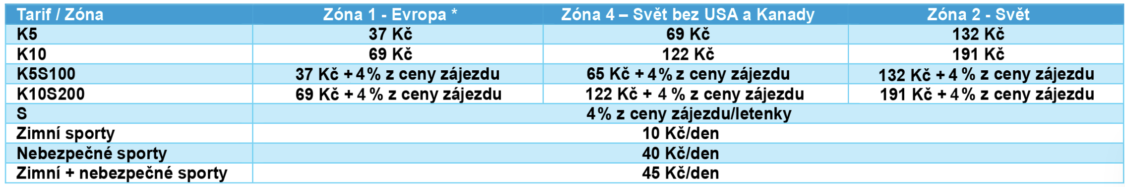 Pojištění bez připojištění nebezpečných sportů a zimních sportů. Toto pojištění je vhodné pro turistické zájezdy, kde se pohybujete do 3000 m n.m. a nepoužíváte žádné ferratové, ledovcové či horolezecké pomůcky.